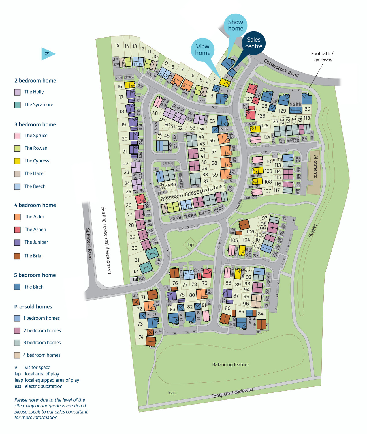 View Opening HoursThe site plan which can be found on this page, has been produced for home identification purposes only and is not to scale. The development layout, landscaping and tenure of all dwellings may be subject to change throughout the course of the development. Finishes and materials may vary from those shown on the plan. Please check the details of your chosen plot and house type with the sales consultant. Development layout plan correct at time of production.