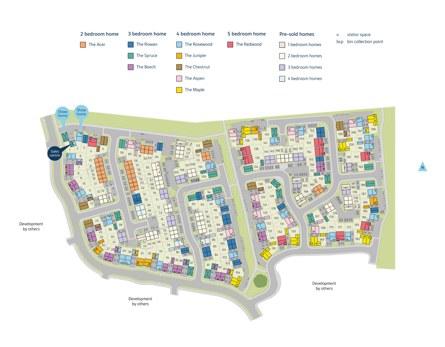 The site plan which can be found on this page, has been produced for home identification purposes only and is not to scale. The development layout, landscaping and tenure of all dwellings may be subject to change throughout the course of the development. Finishes and materials may vary from those shown on the plan. Please check the details of your chosen plot and house type with the sales consultant. Development layout plan correct at time of production.
